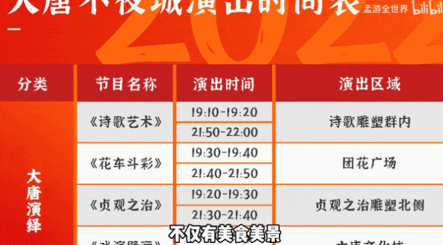 总共景区说是一步一景也不为过,每晚固定时期,街区内会有诗歌艺术、花车斗彩、霓裳羽衣等精彩上演。