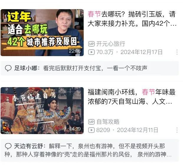 B站上的UP主们,不仅仅共享旅行攻略,更像是春节出游的“军师团”。