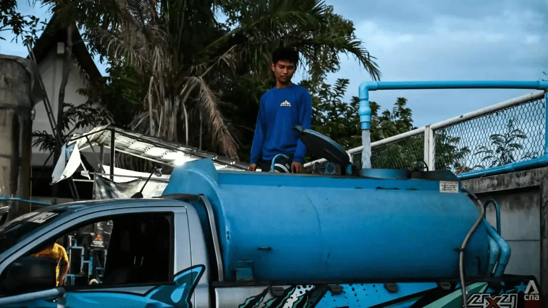 ● 当地的年青东谈主在用卡车抽取私东谈主用水 @ CNA