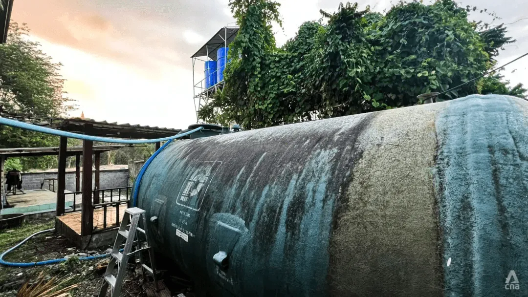 ● 苏梅岛的旅社大多使用这种储水箱,因为群众给水不够可靠 @ CNA