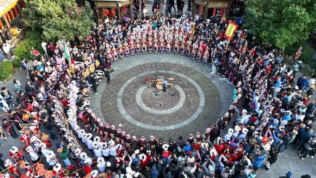 2024年11月30日,侗族各人在黎平县肇兴侗寨进行文艺饰演(无东谈主机像片),轻歌曼舞欢度侗年。新华社发(王纯亮摄)