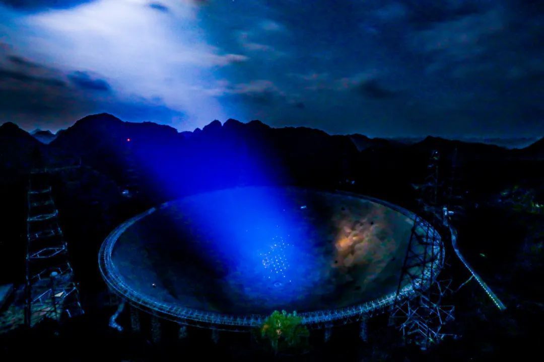 2020年1月8日,蟾光下的“中国天眼”。新华社记者 欧东衢 摄
