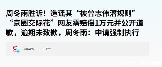 因此,他需要向周冬雨公开谈歉并抵偿1万元的精神亏蚀费以作补偿。 但因为责骂者拒却实践,于是周冬雨向法院央求了强制实践。