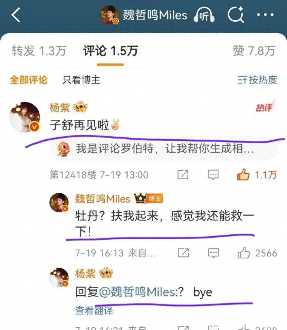 不外魏哲鸣是回了杨紫什么吓得杨紫径直说bye