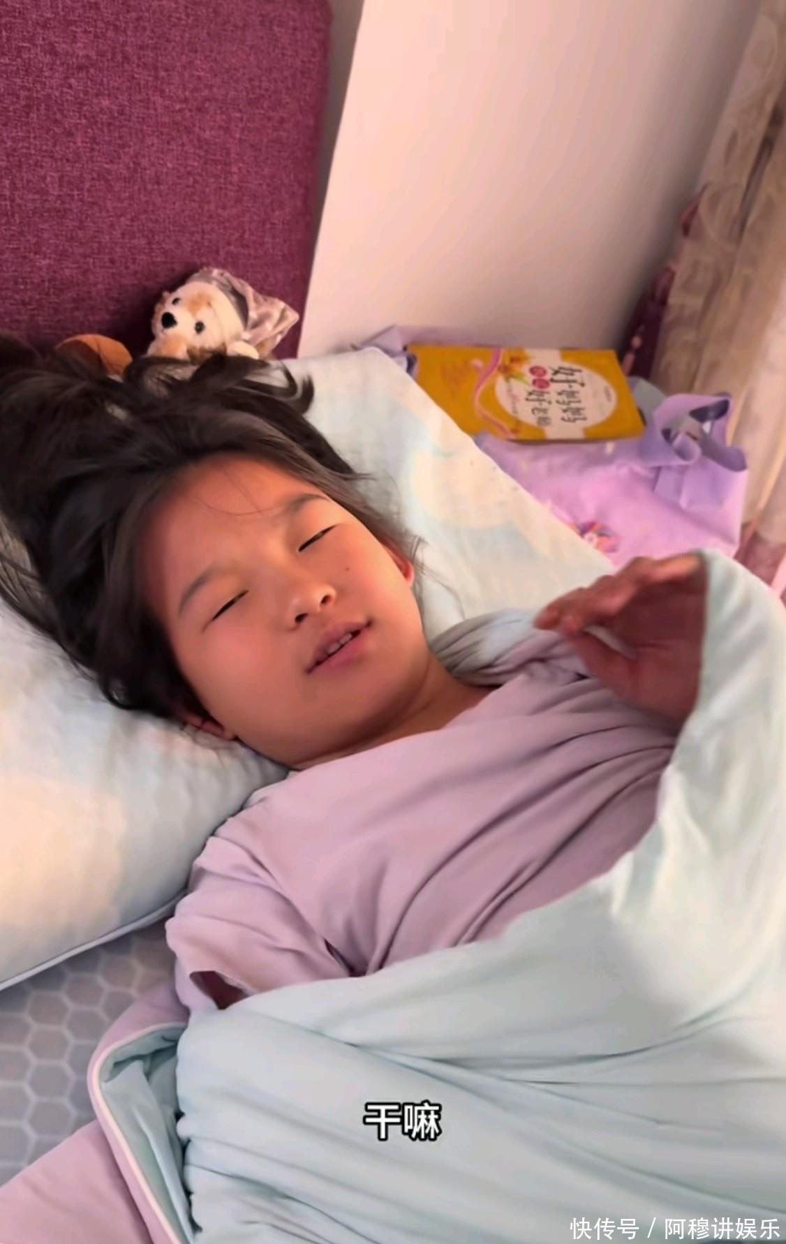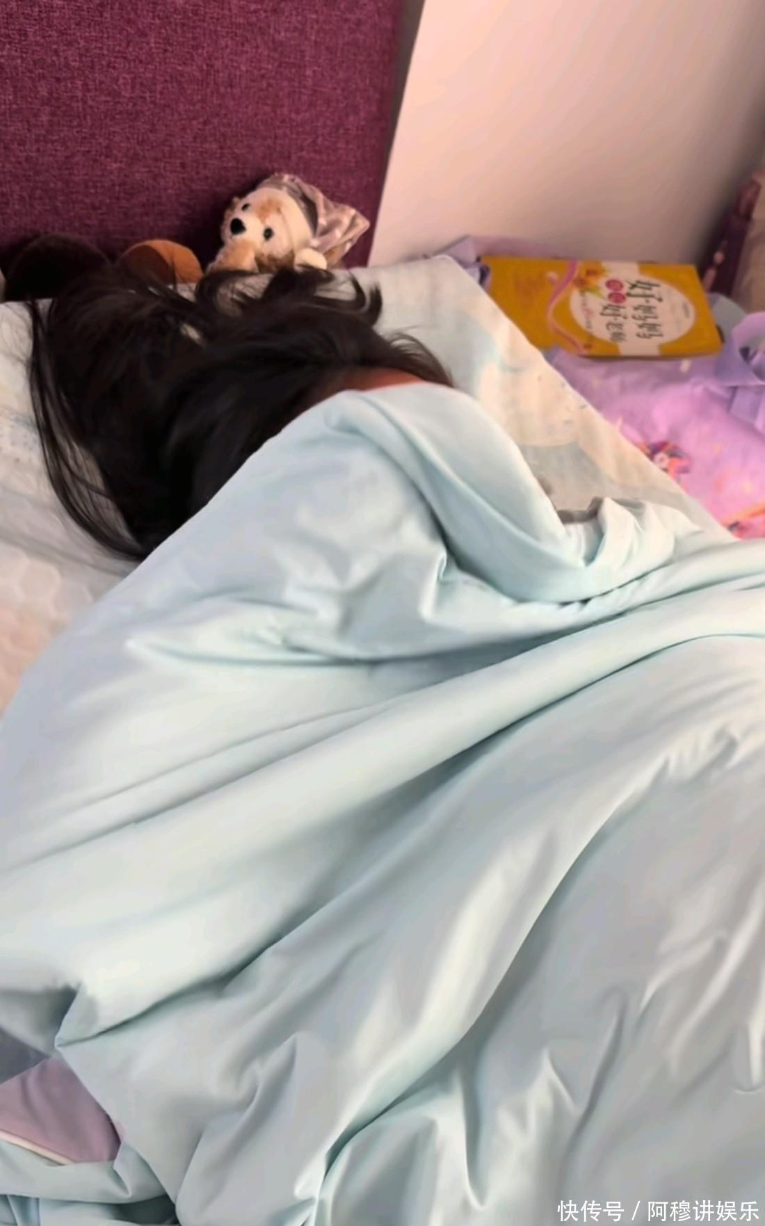 小妹在寝息,盖着一床雾霾蓝的被子。是直播间卖过的床品吧?