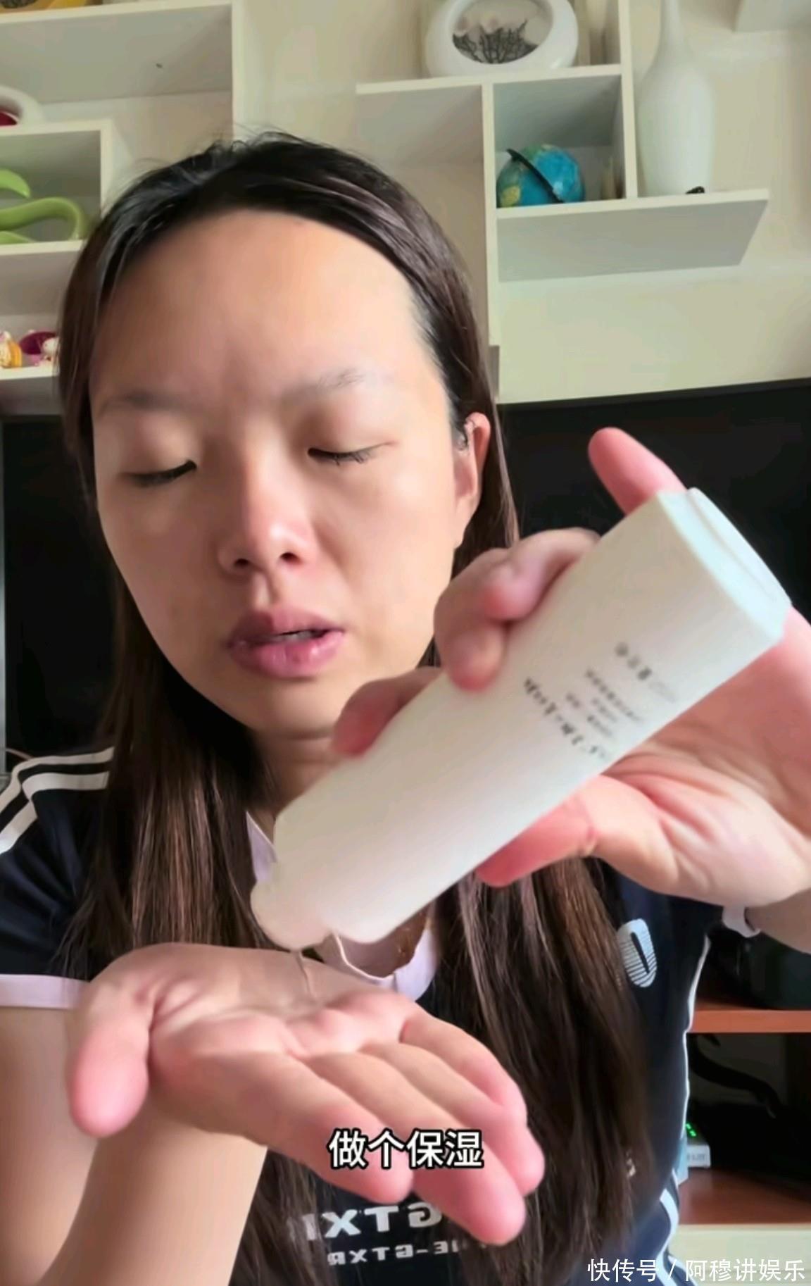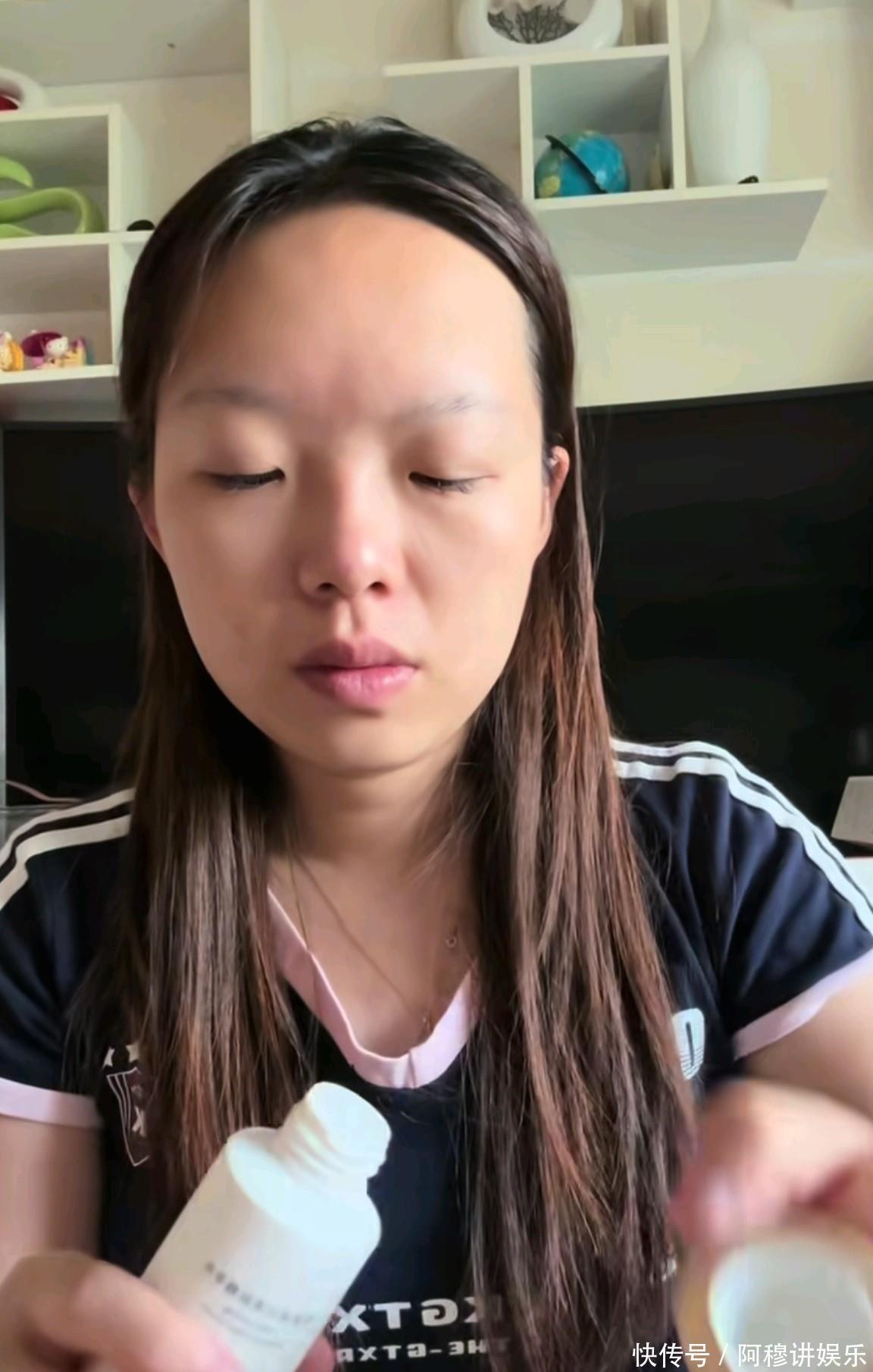 作念个保湿。大妹拿着的化妆水是啥品牌呢?