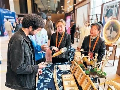 第七届中法文化论坛时期,法国嘉宾体验湖南非遗草编本事。